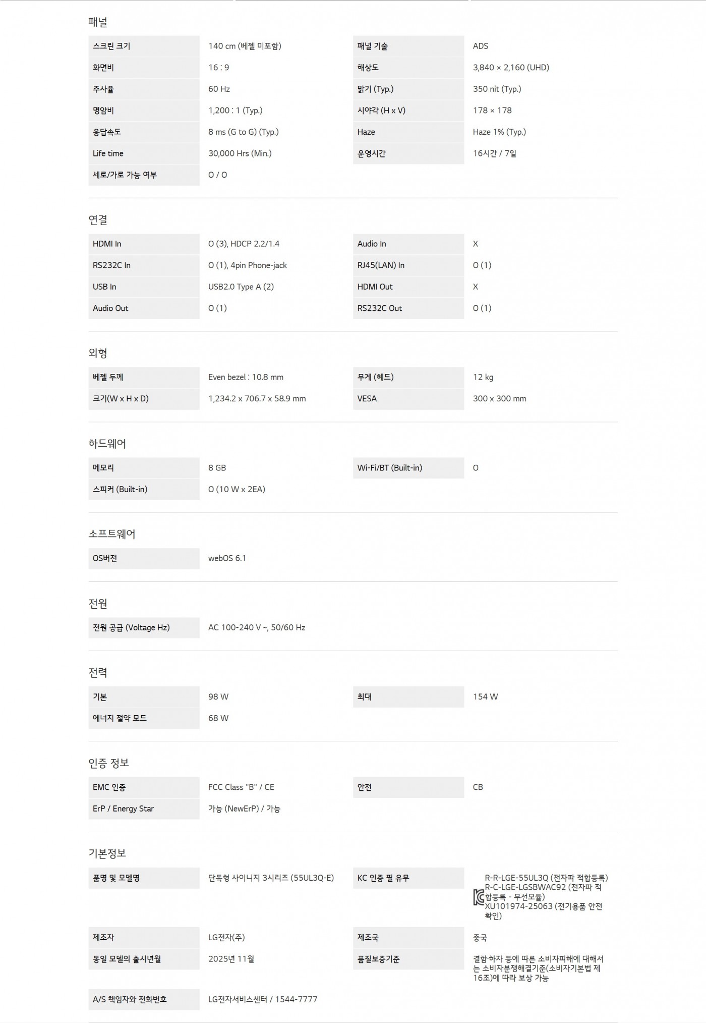 단독형 사이니지 UL3Q시리즈